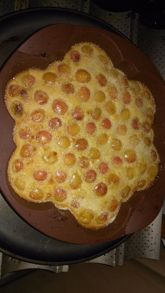 Versez la préparation dans le plat sur les cerises et enfournez pour 35 à 40 minutes.